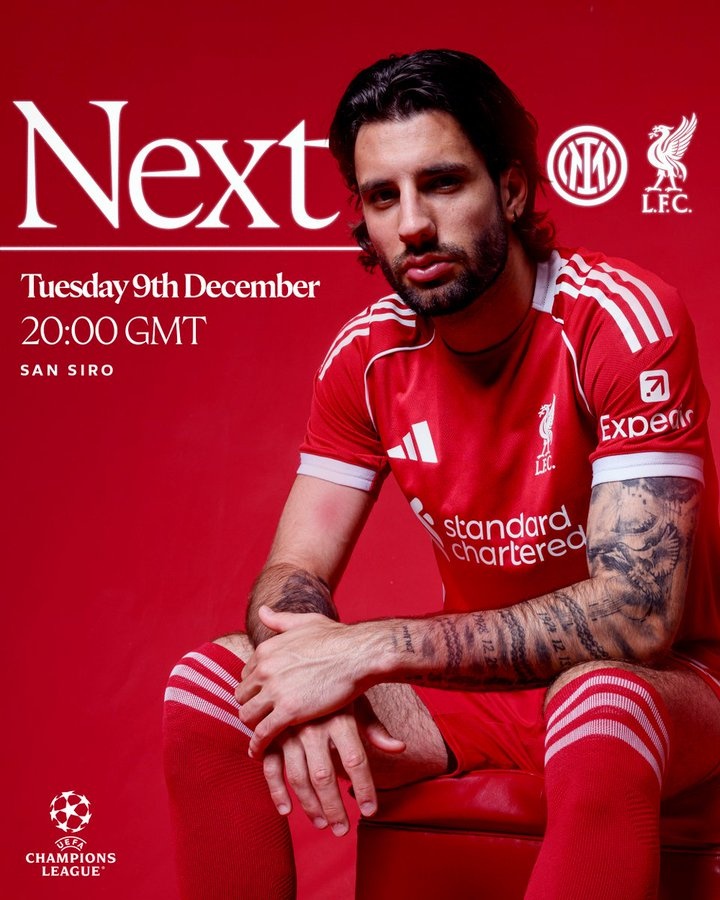 利物浦官推今日晒出海报,为比赛预热,官推写道:“欧冠第六轮,我们将面对国际米兰。”