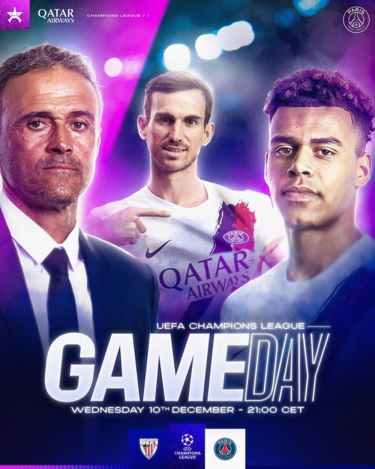 直播吧12月10日讯 北京时间明天凌晨,巴黎将在欧冠联赛阶段第6轮比赛中客场对阵毕尔巴鄂竞技。